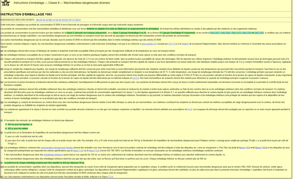 L’instruction Y963 définit les règles d’emballage auxquelles les produits classés ID8000 doivent se conformer.