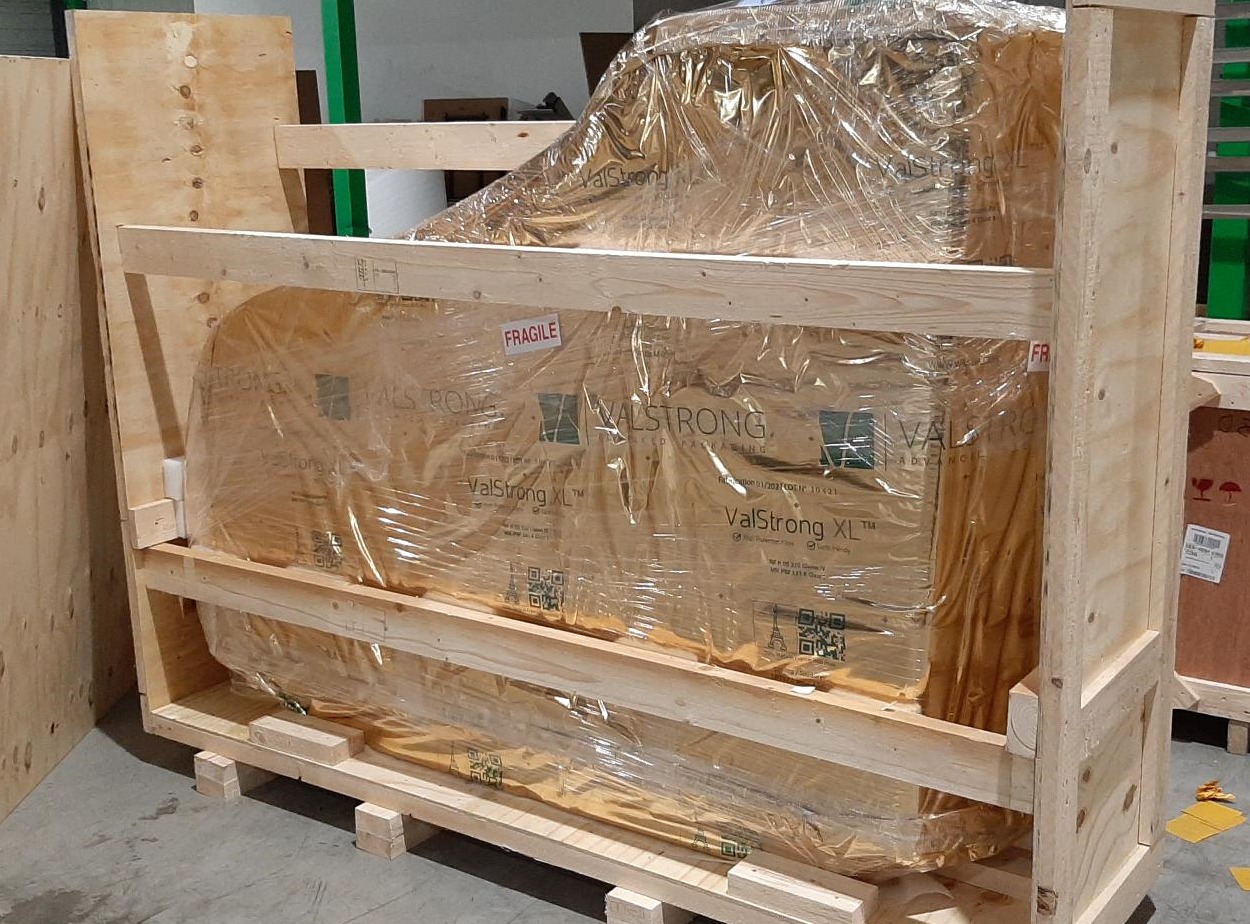Ce procédé crée une protection sous vide, empêchant toute infiltration d’air humide et stabilisant l’environnement intérieur pendant toute la durée du transport.